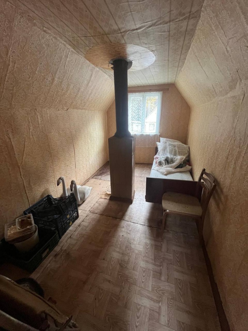 Деревянный одноэтажный с мансардой, обшит сайдингом. Перекрытия деревянные.