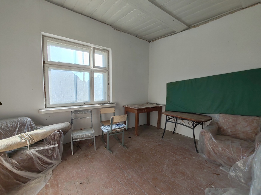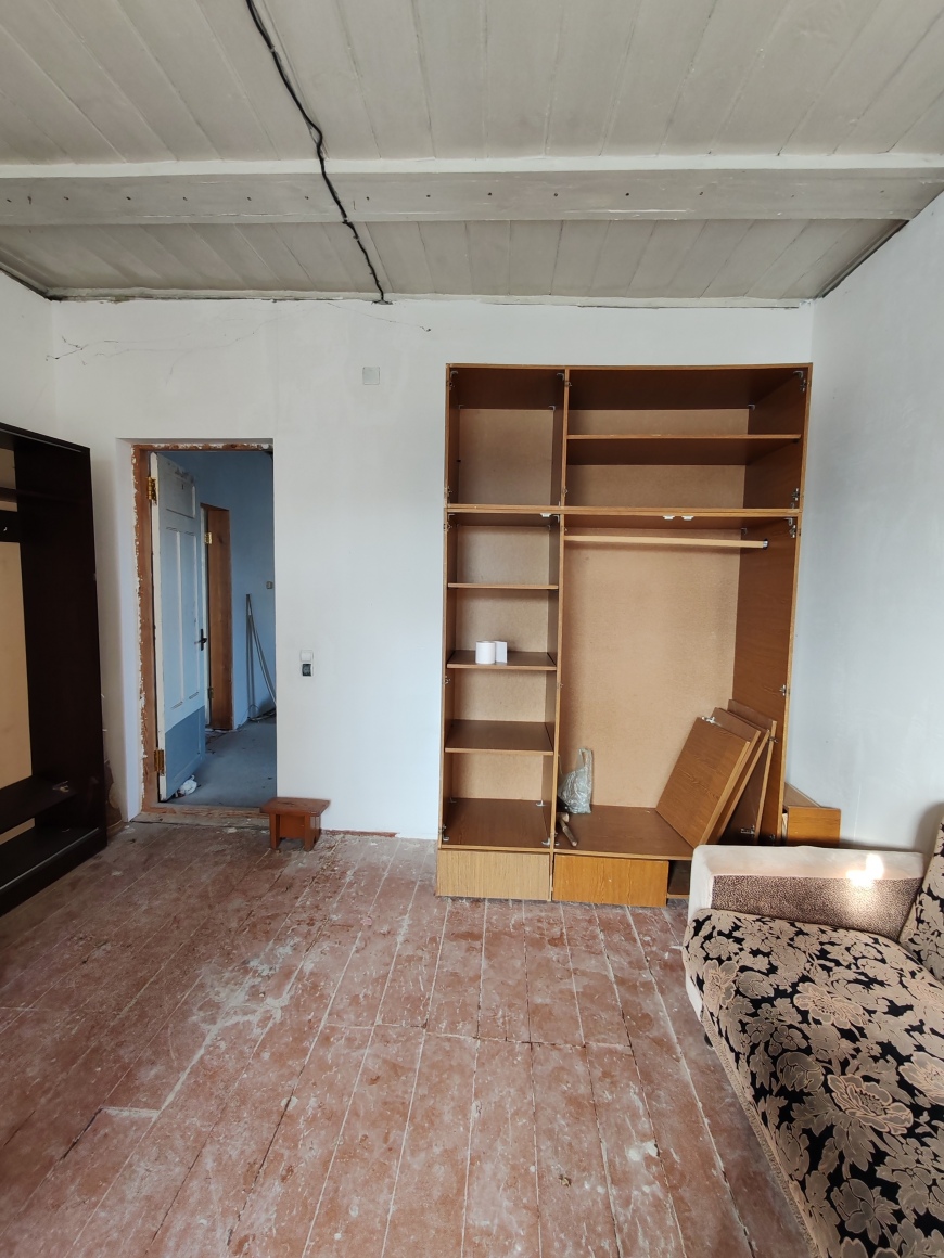 Вторая часть без ремонта, но с подготовкой под отделку (заменена электропроводка, стены выравнены гипсокартоном и оштукатурены).
