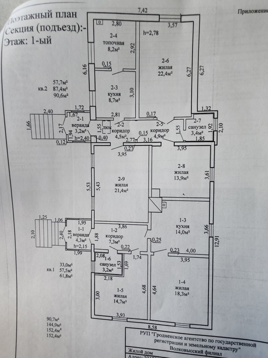 Дом разделён на 2 изолированных помещения (квартиры) с отдельными входами. Продаётся целиком одному покупателю.