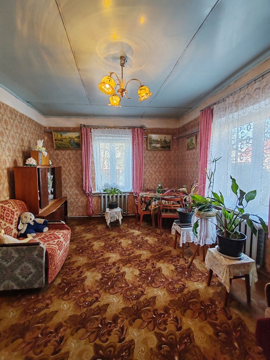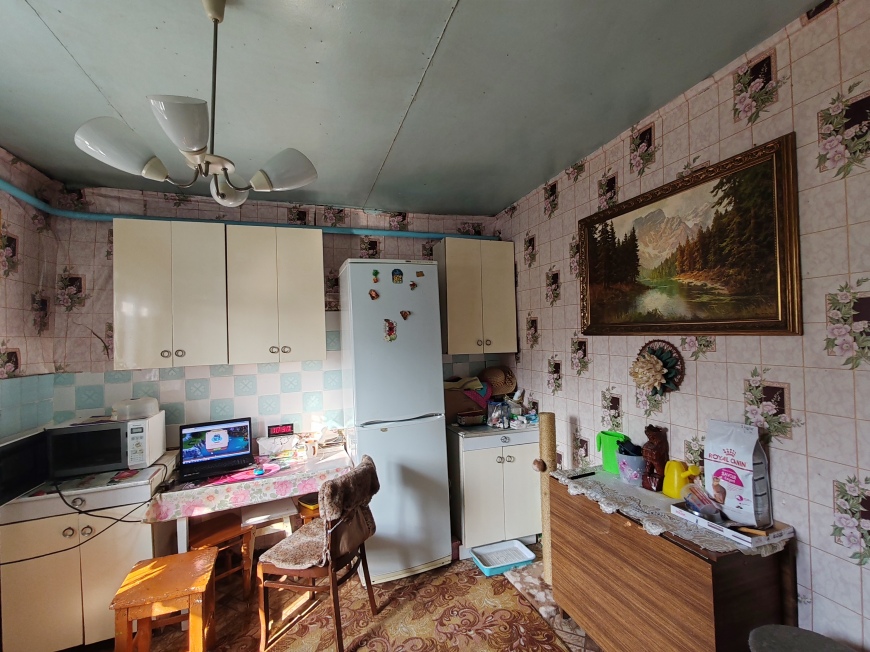 Кровля шиферная, не течёт. Внутренняя отделка времен СССР. Ремонт нужно освежать. Окна везде заменены на стеклопакеты.