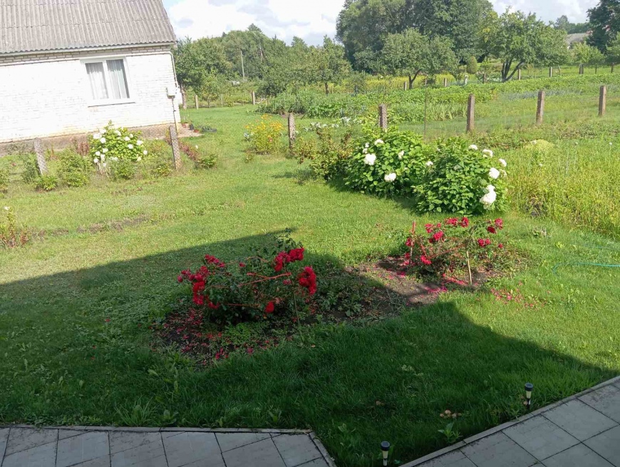 Участок более 25 соток. Растут плодовые деревья, виноград, голубика. Красивый ухоженный газон.