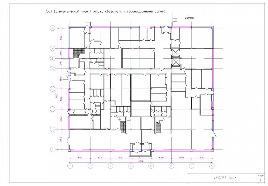 -навес над рампой – со стойками и балками из стальных прокатных профилей, монолитной ж/б плитой покрытия и плоской рулонной малоуклонной скатной кровлей.