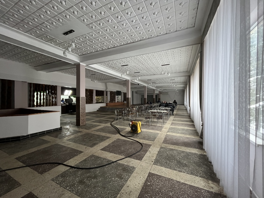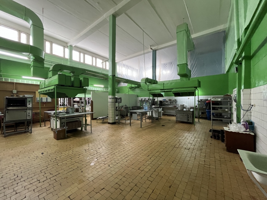 На втором этаже расположены столовая с обеденными залами и кухней, буфет, производственные, складские и административные помещения, моечные.