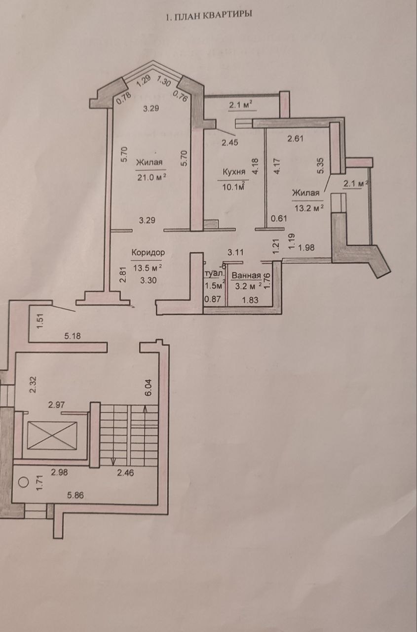 Квартира отличается нестандартной планировкой: большой коридор площадью 13,5 кв.м.. зал 21.0 кв.м. с эркерным окном, кухня площадью 10,1 кв.м., две застекленные лоджии.