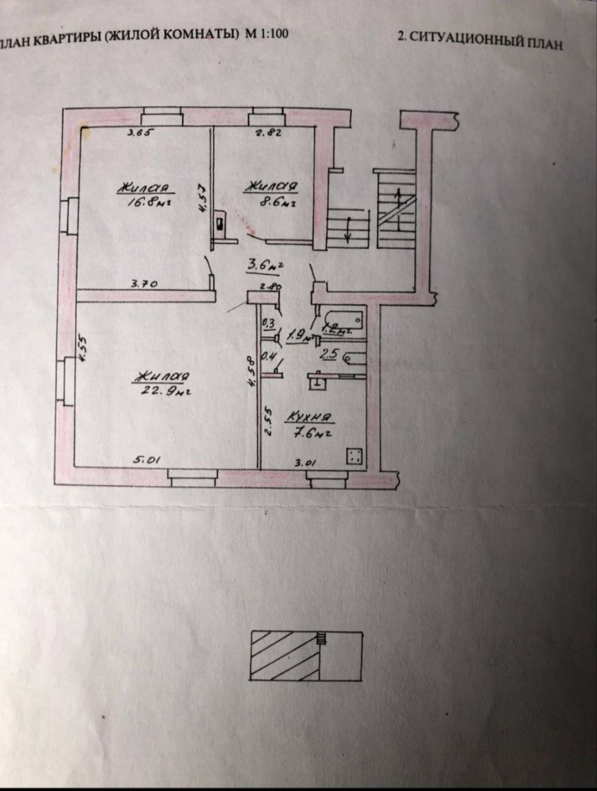 Квартира представляет собой изолированное жилое помещение общей площадью – 65,8 кв.м., жилой площадью – 48,3 кв.м., кухня – 7,6 кв.м. Высота потолков – 2, 85 м.