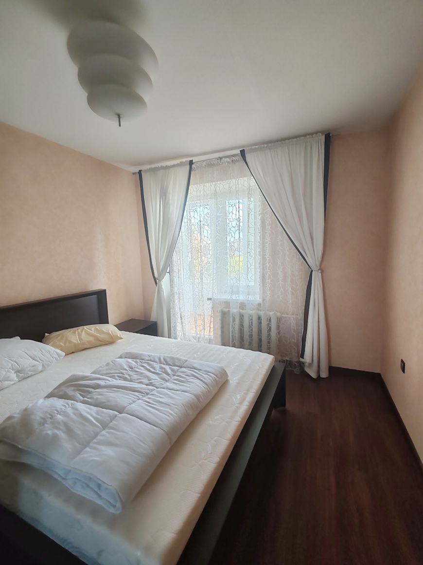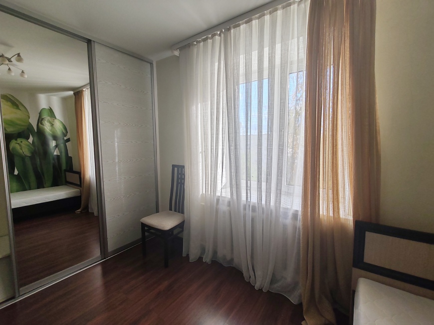 В квартире три жилых комнаты, раздельный санузел, две лоджии, встроенный шкаф. Установлены хорошие окна, балконные рамы, двери.