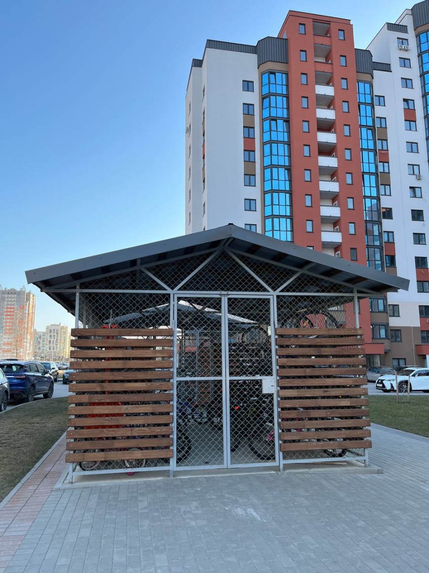 Благоустроены двор с современной детской игровой площадкой, большой парковкой, с местами хранения велосипедов и другого инвентаря.