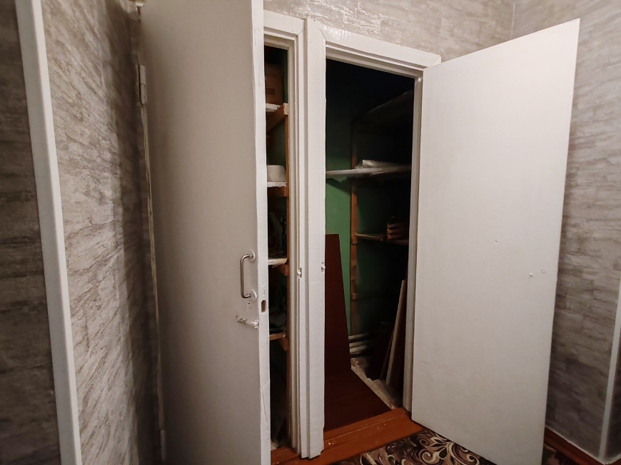 В квартире просторная комната с двумя окнами, совмещённый санузел, большая кухня, две кладовки, застекленная лоджия.